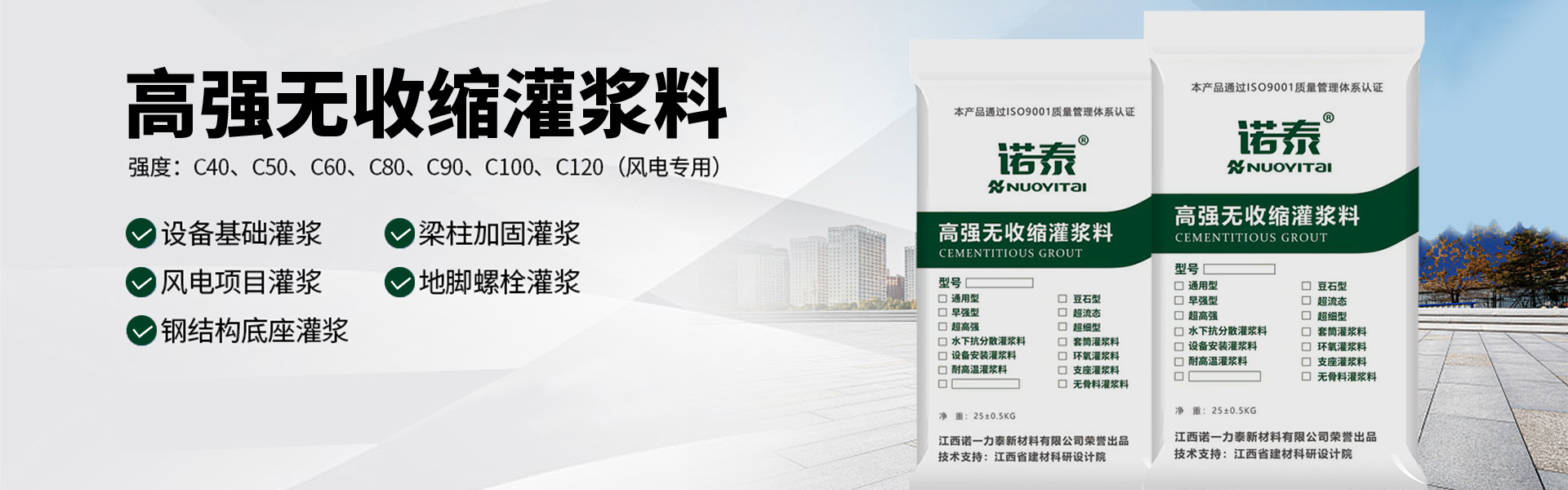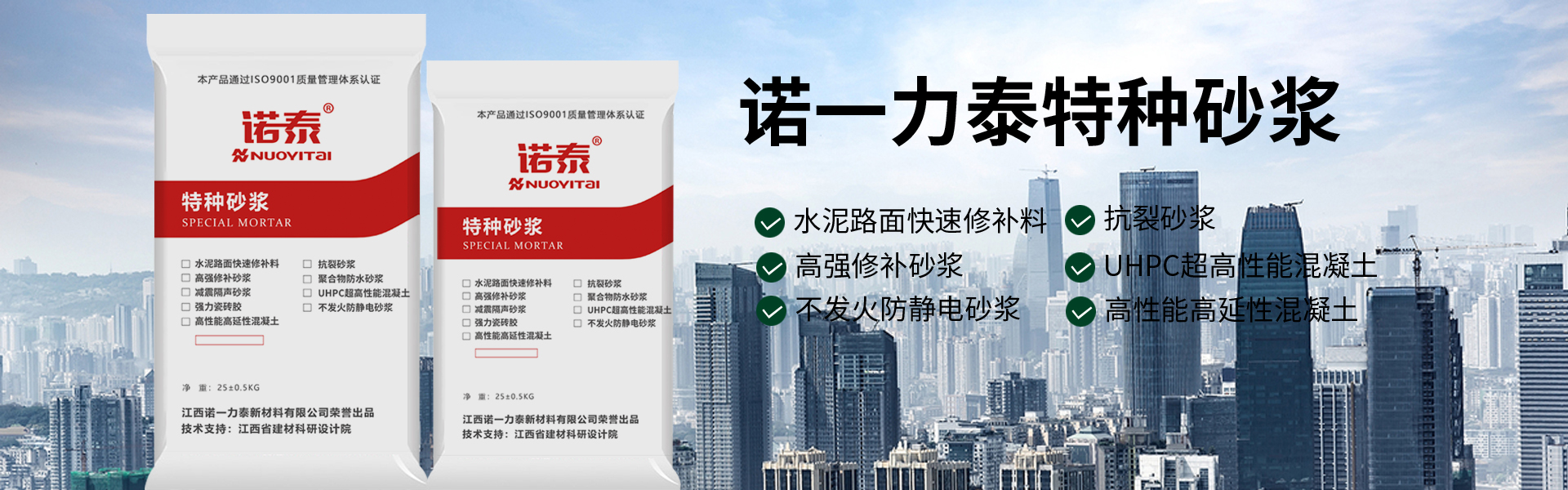 江西諾一力泰新材料有限公司位于江西宜春奉新縣,是專業從事灌漿料水泥路面修補砂漿、抗裂砂漿防水砂漿保溫砂漿、隔聲砂漿、粘結砂漿等砂漿系列產品生產銷售的廠家。